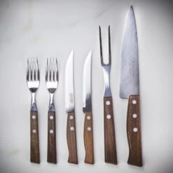 The set includes an 8.5″ carving knife, carving fork and sharpening steel to keep the blade in pristine condition. The clean design features beading detail around the handles to add subtle intrigue.