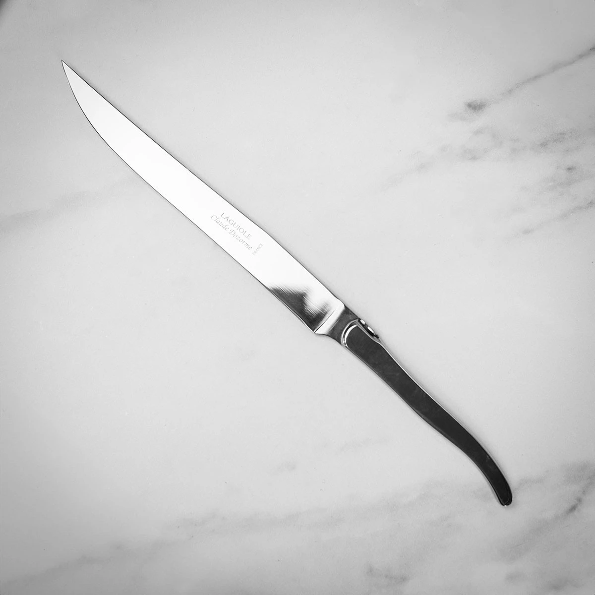 The curvaceous nature of the handle guarantees a comfortable grip and is delicately crafted to achieve a ‘Laguiole’ finish. Made of Ebony wood, the material is resistant to moisture and is hand-polished for a smoother, elegant finish. The metallic decorative spine and signature bee sitting at the base of the blade is a mark of authentic quality and add a subtle charm.
