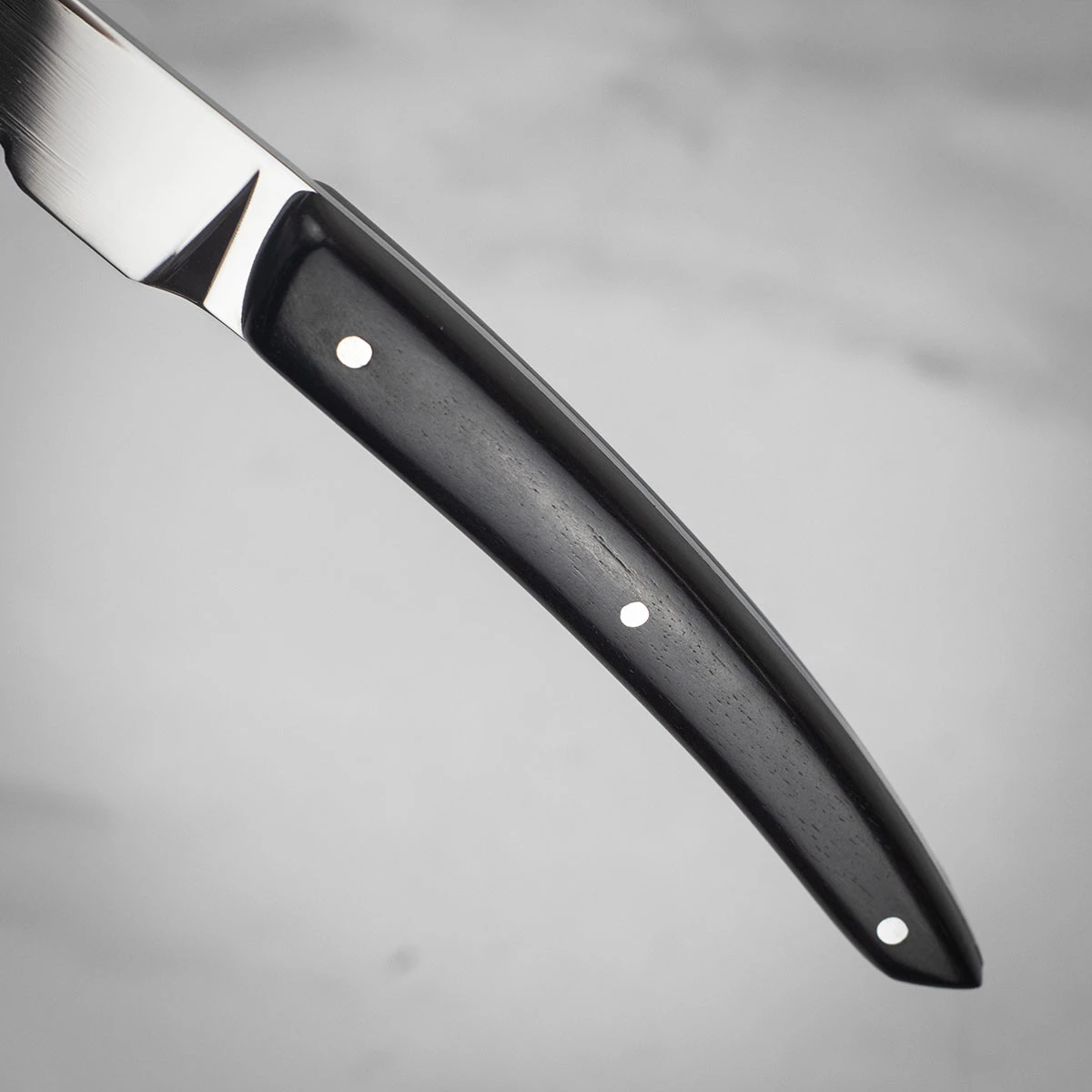 The slender and mildly arched handle is delicately crafted for a comfortable grip, with a chic simplicity that wouldn’t look out of place in an artisan boulangerie. Ebony wood is known for its rich colour and fine texture, but it’s also resistant to moisture and highly durable.