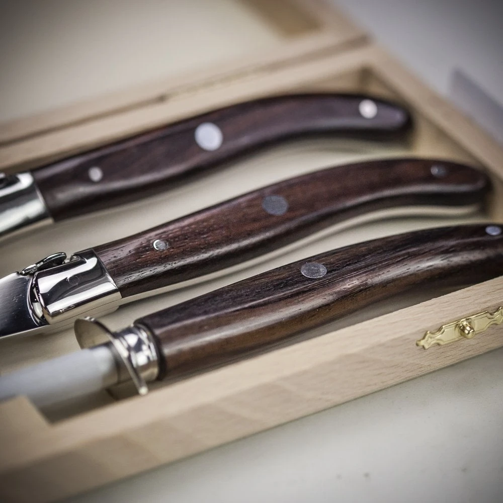 Presented in a light wood gift box, an engraved message can be added to the knife blade for a stunning gift.