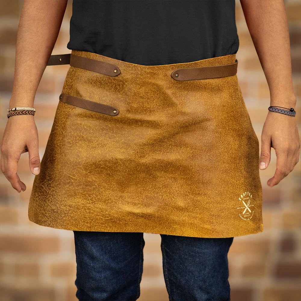 Featuring an adjustable waistband for comfort and a useful towel loop, this handmade leather apron is a natural choice for cooking, barbecuing, bartending and more.