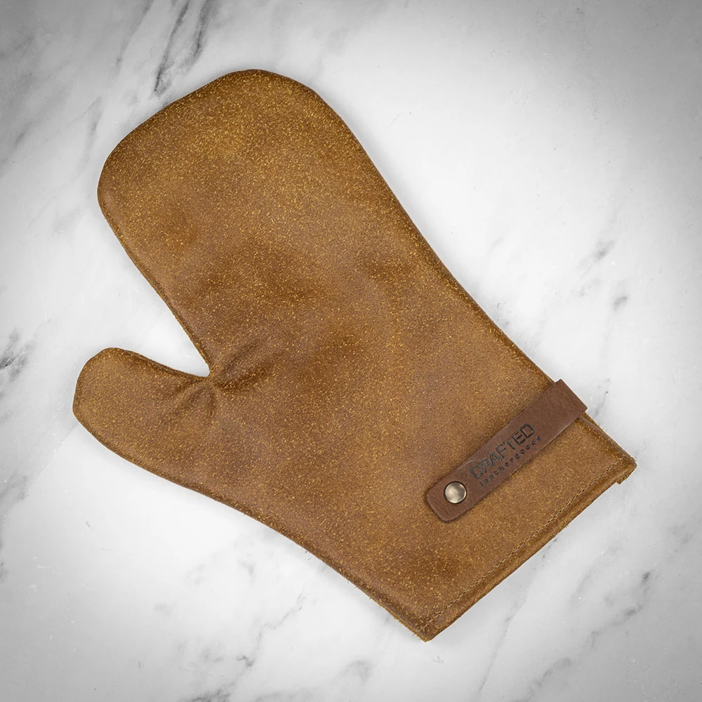 Using only the finest cowhide from Dutch tanneries, this handmade Rustic Oven Glove from Crafted gets better looking the more you use it.