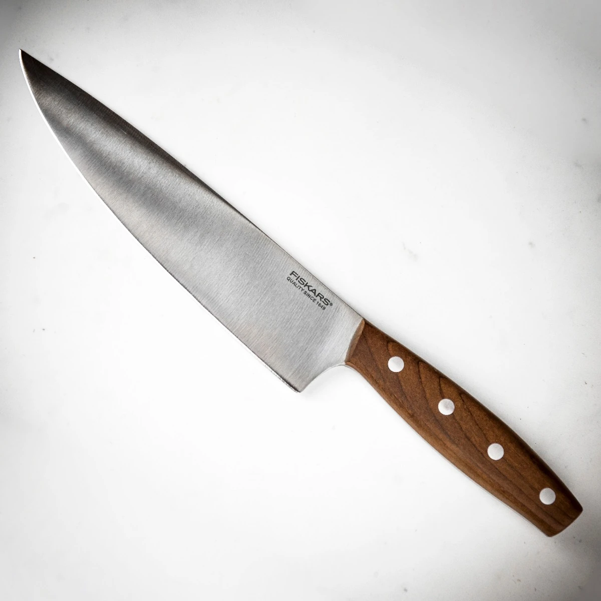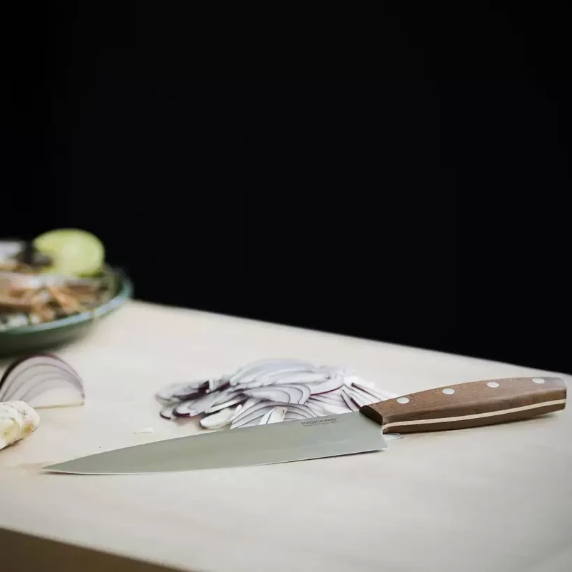 Representing timeless Scandinavian style the smoothly shaped handle has a natural wood texture crafted from sustainable Kebony wood. The blade is crafted from quality German steel and is ideal for general chopping tasks.