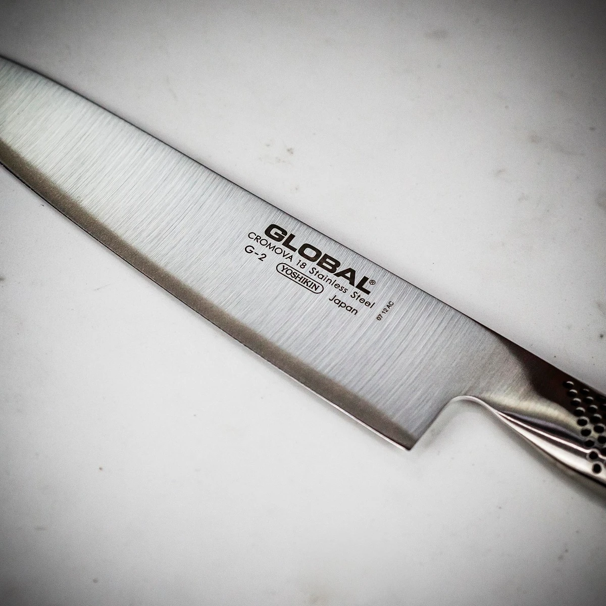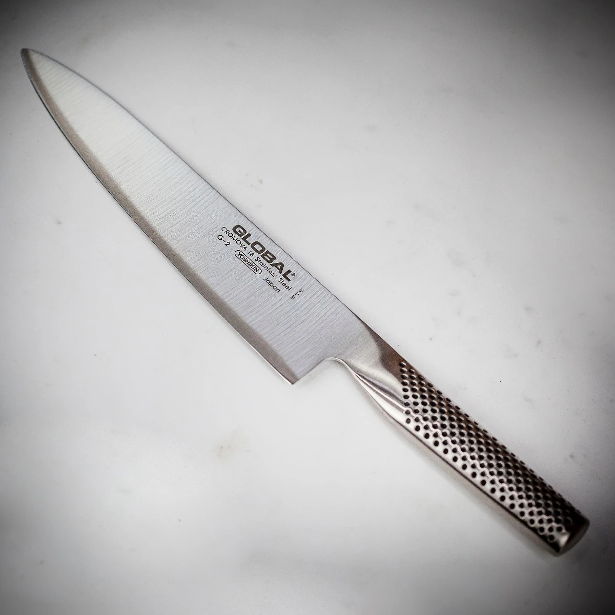 With an incredibly sharp blade edge cut at an acute angle this Global chef knife delivers the perfect cut every time. The hollow handle is sand filled for perfect balance to keep the knife easy to use and precise.