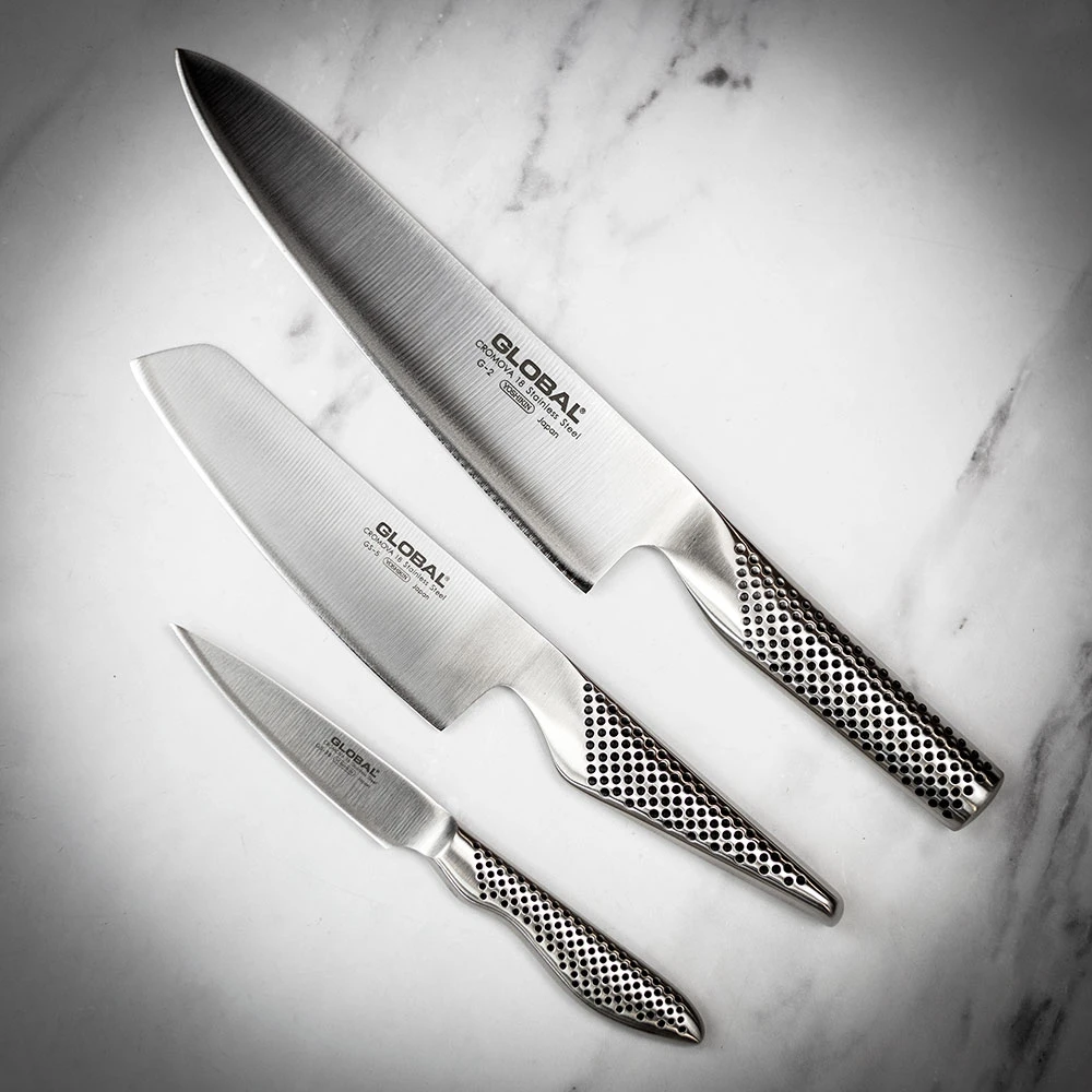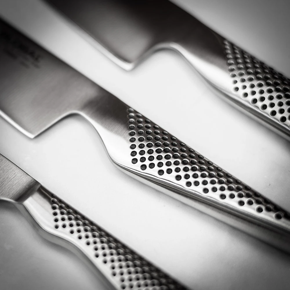 The precisely balanced hollow sand filled handle is a pleasure to hold. Smooth contours and seamless construction eliminate food or dirt traps offering the ultimate safety and hygiene.