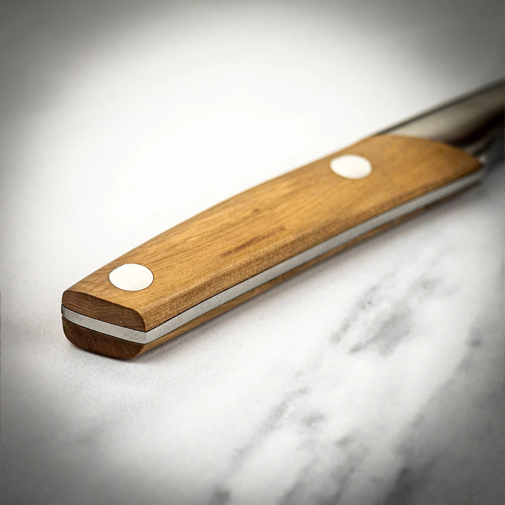 Beautifully balanced, full tang, riveted with an attractive, ergonomic juniper wood handle, this premium French made set is a pleasure to work with and a must have for those who appreciate exceptional quality.