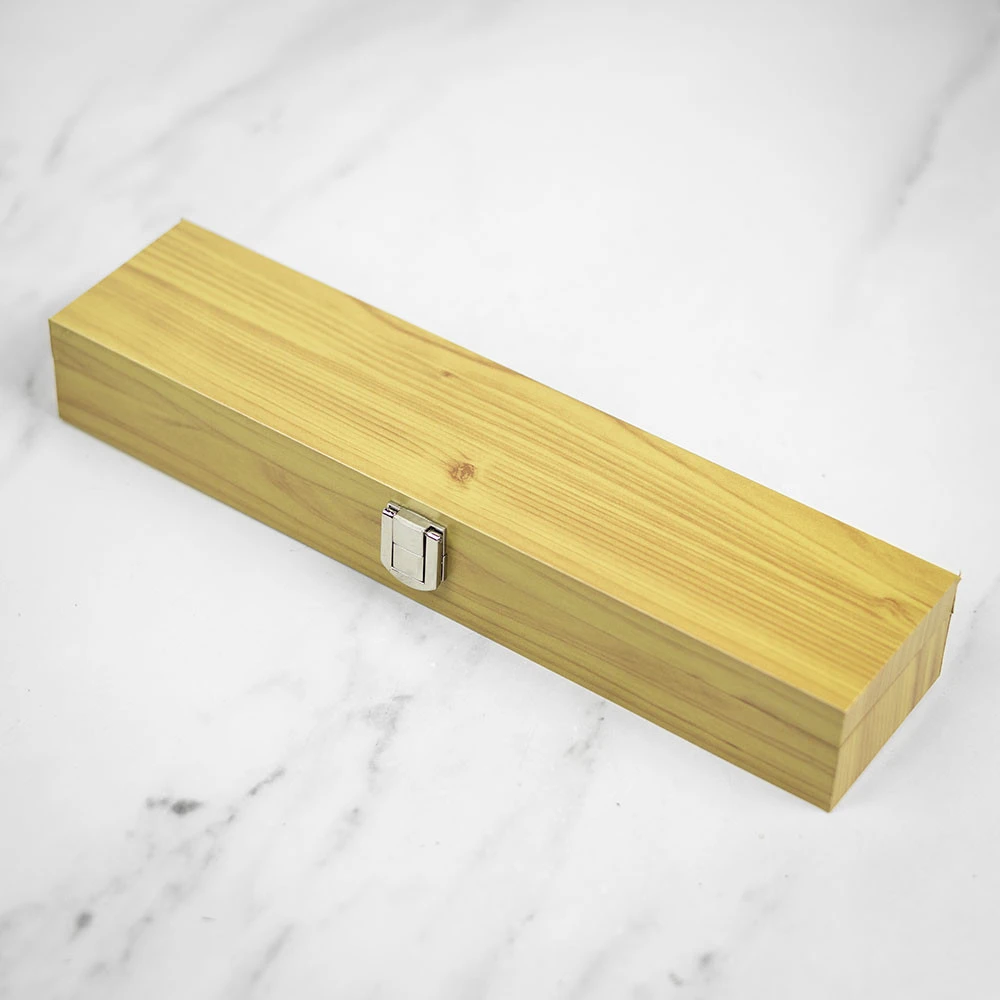 - Lacquered wood-effect presentation box