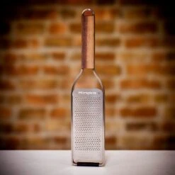 The fine blade is designed for hard cheese, citrus fruits and adding flavour with garlic or chilli. Finished with a walnut wood handle and a non-slip base this is a premium addition to your kitchen arsenal.