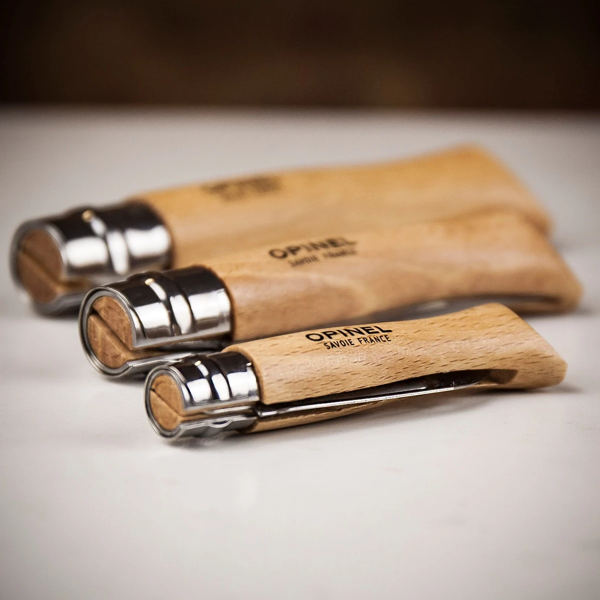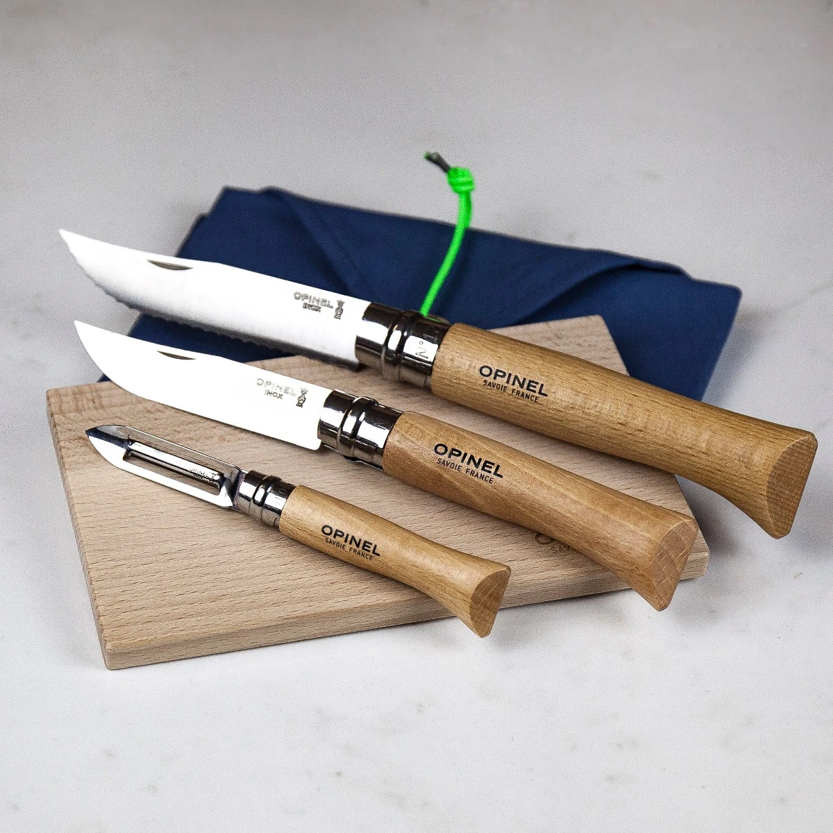 The No.10 corkscrew knife has a 10cm blade for cutting and a corkscrew hidden in the handle so you can enjoy your favourite wine wherever you are. There is also a No.12 knife with a 12cm serrated blade and a No.6 peeler which completes the set.