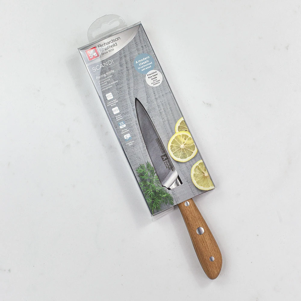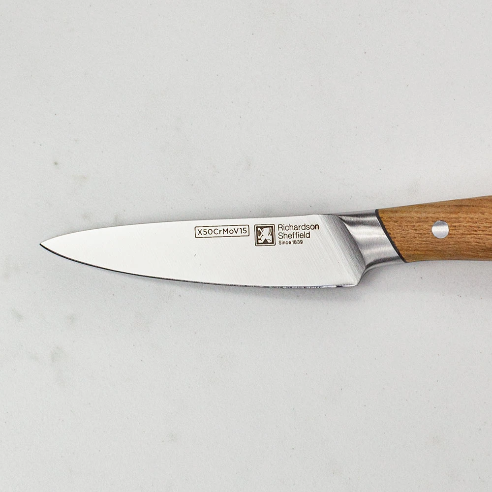 The ash wood handle is carbonised, giving it not just a richer colour but making it stronger, more water resistant and with antibacterial properties. Its unique rivets are designed for comfort, so for any chef it is a pleasure to hold.