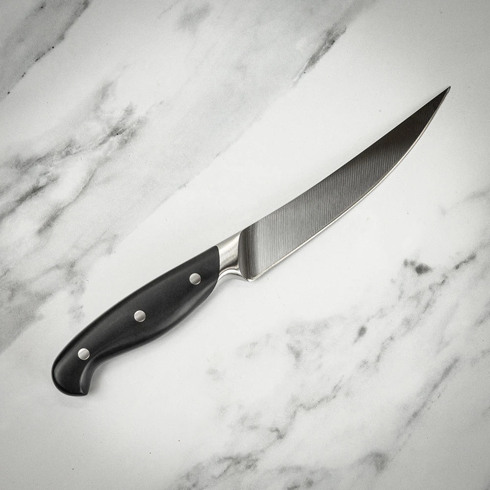 Crafted from top-tier German stainless steel through a meticulous forging process, this knife boasts a hand-applied 15° edge, ensuring superior sharpness for flawless performance. The DuPont handle, with its classic shape, offers a comfortable and secure grip. Elevate your kitchen with this exceptional utility knife, securely presented in its professional packaging.