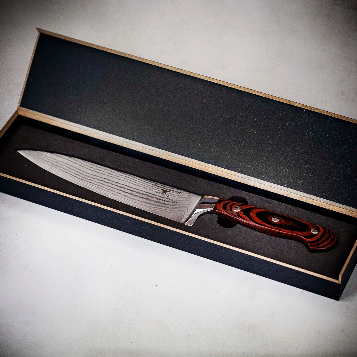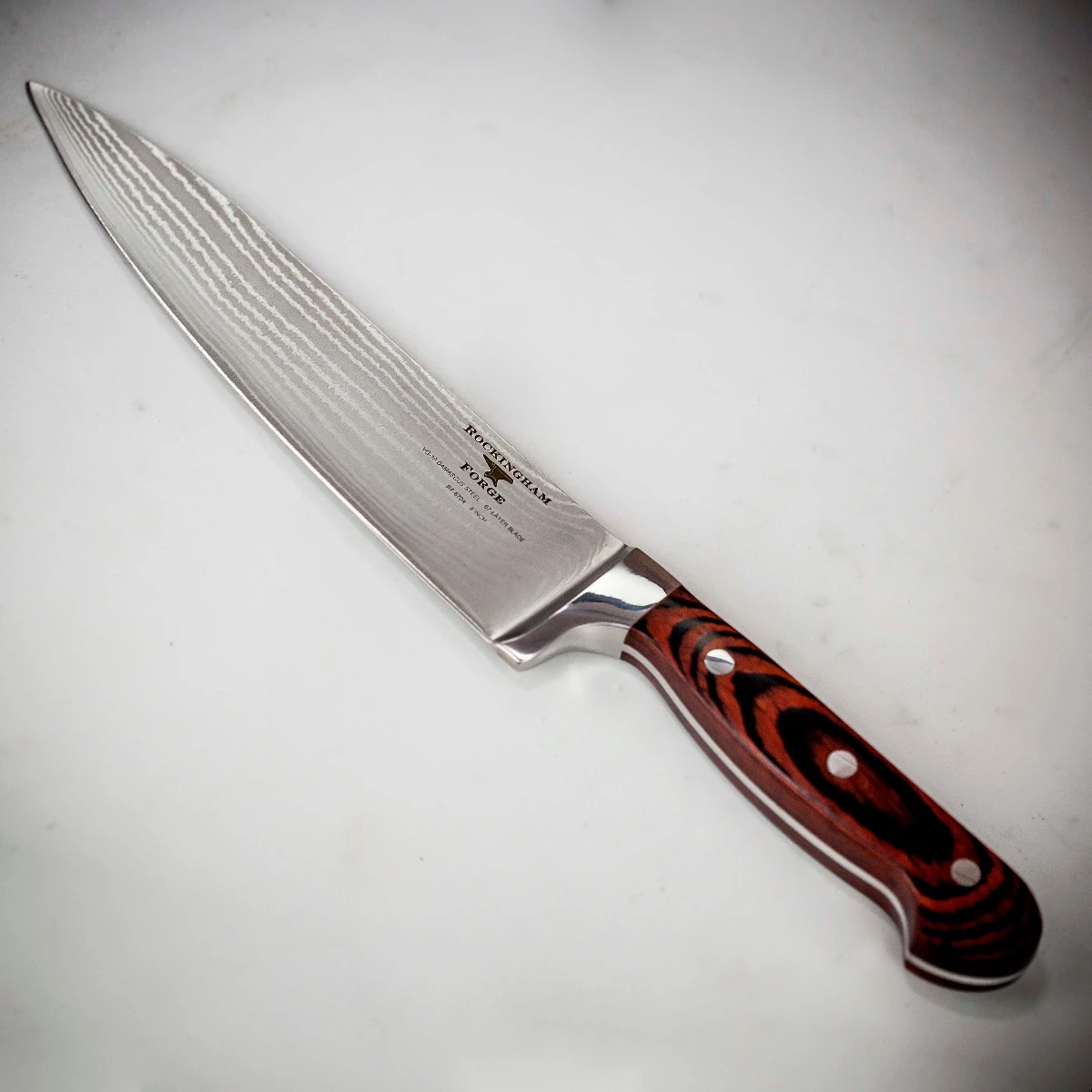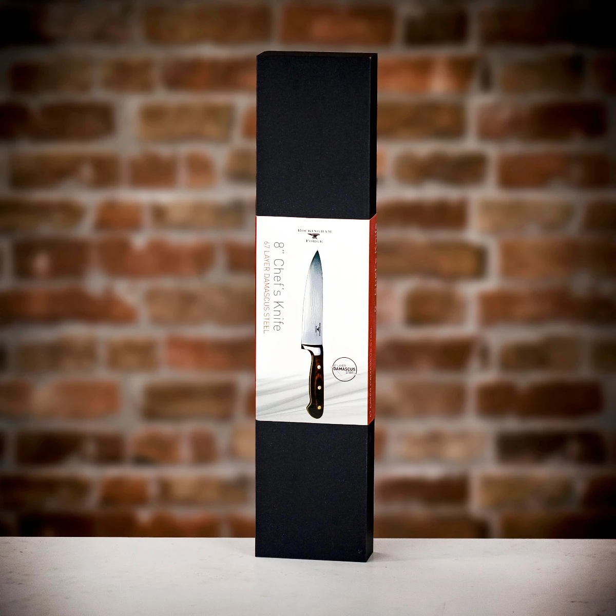 Damascus steel is known worldwide for its strength and has been used by Rockingham Forge to create this 8″ chef’s knife. The 67 layer steel has a beautiful finish which delivers a precise cut each time.