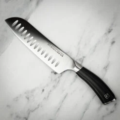 The Santoku Knife is a is a flexible, all-purpose knife that can be used for slicing, dicing, mincing and more…gliding effortlessly through ingredients.