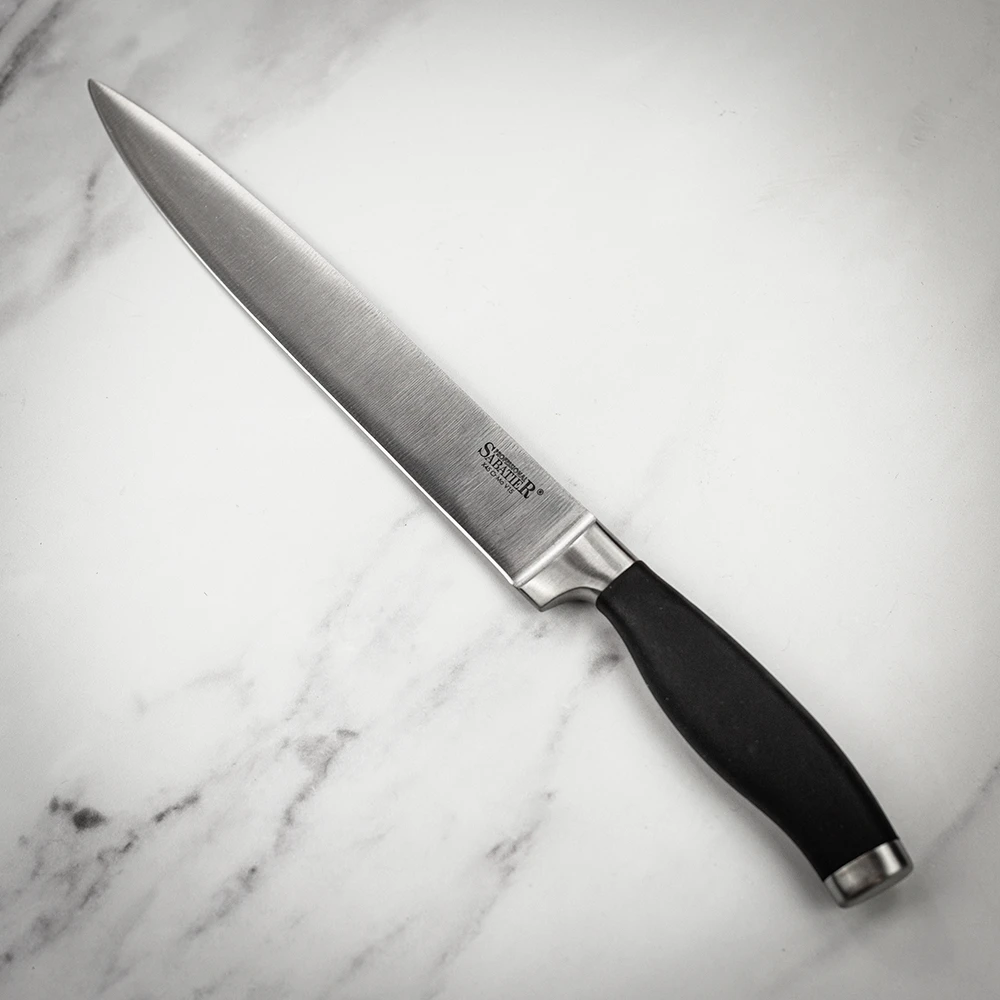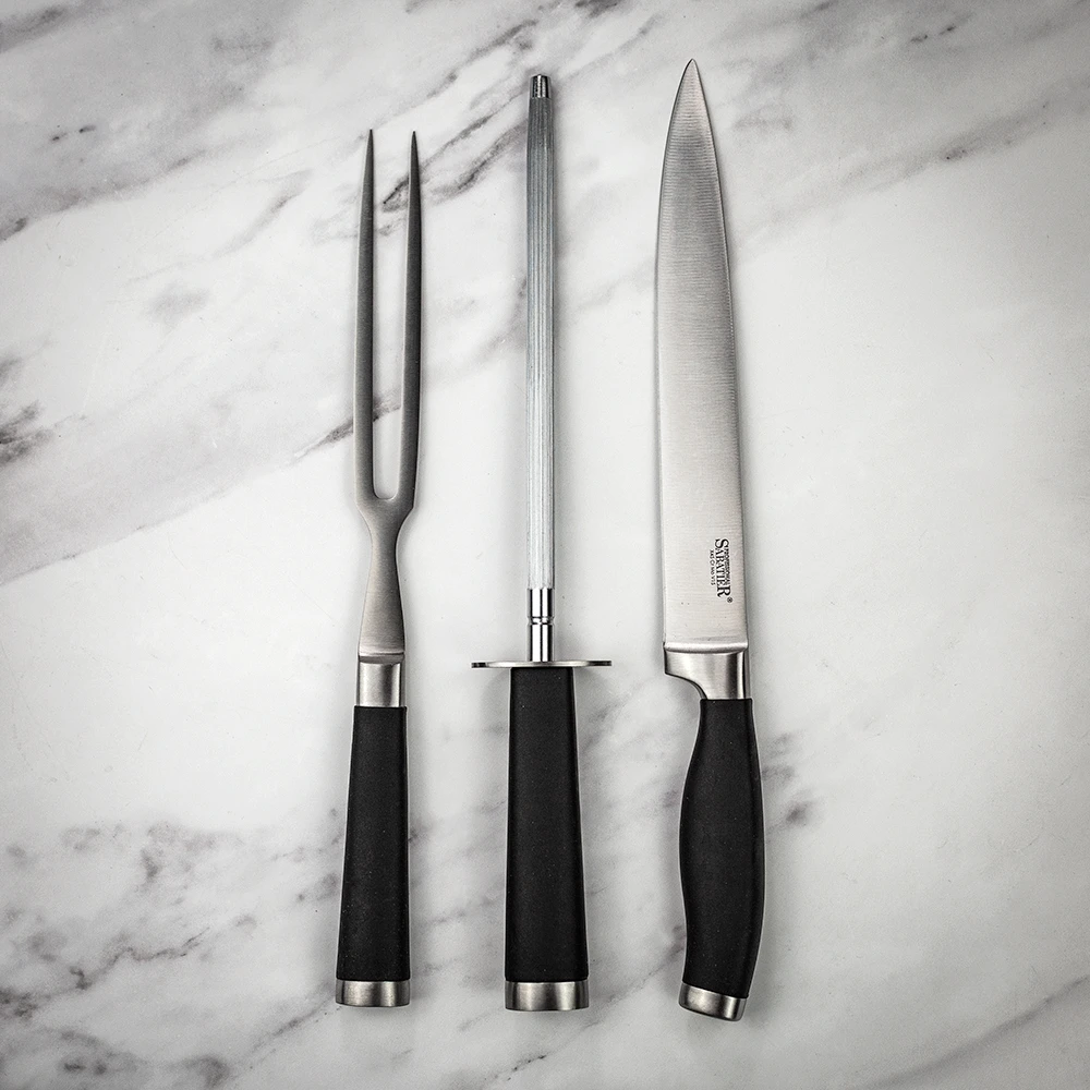 The classic carving knife glides effortlessly through meat with the most satisfying degree of precision, and the well-balanced soft grip handles are crafted to fit perfectly in your hand.