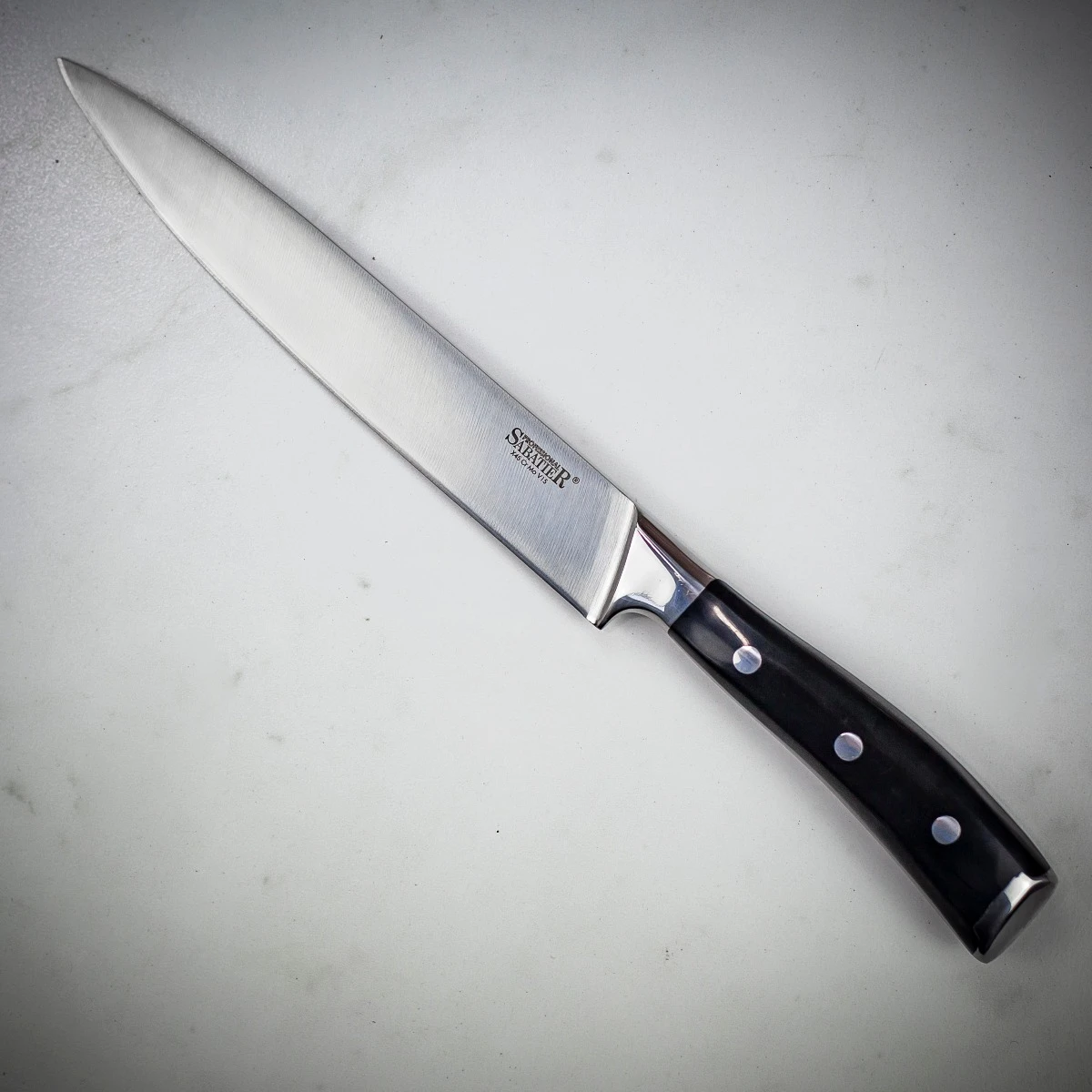 Constructed for durability, the Professional Sabatier range features high quality chrome molybdenum vanadium steel blades and tempered ended handles. The full tang stainless steel blade retains a sharp edge for ease of use and can quickly be sharpened to ensure it is always delivering the perfect slice.