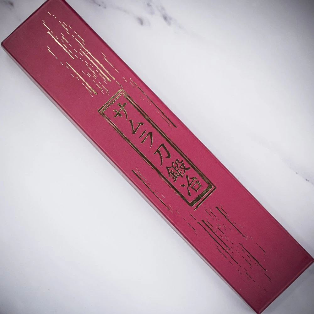 The handle, made from durable and attractive Micarta, sets off the blade perfectly, providing not just a firm grip but extra wrist comfort.The knife comes boxed and wrapped in a cloth depicting an attractive Japanese style pattern, allowing for safer storage and prevents the knives from becoming blunt.