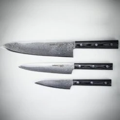 This presentation box create a beautiful set to be gifted to the head chef in your life. Including a Paring Knife 98mm, UItility Knife 150mm and Chef’s Knife 208mm for all of those daily kitchen needs.
