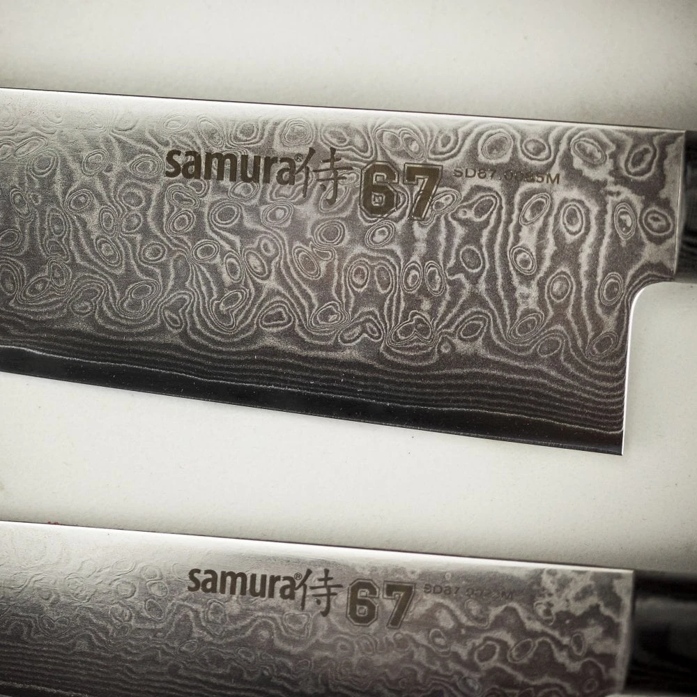 67 layer Damascus steel blades make for cutting through meat and vegetables with ease.