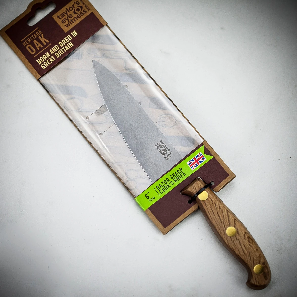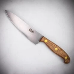 Secured in the oak handle with three solid brass rivets the knife is comfortable to hold as it is shaped to your hand. The chef’s knife is a fantastic all-rounder which can manage a variety of kitchen tasks.